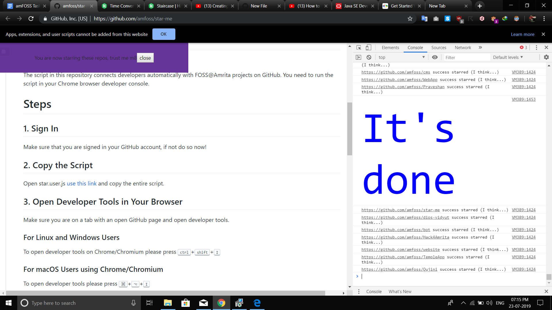 Instructions were quite clear so i followed this repo : https://github.com/amfoss/star-me